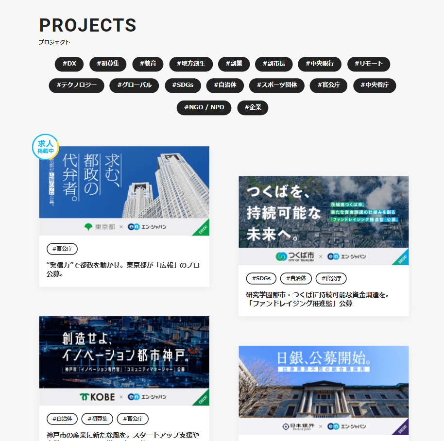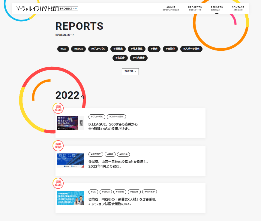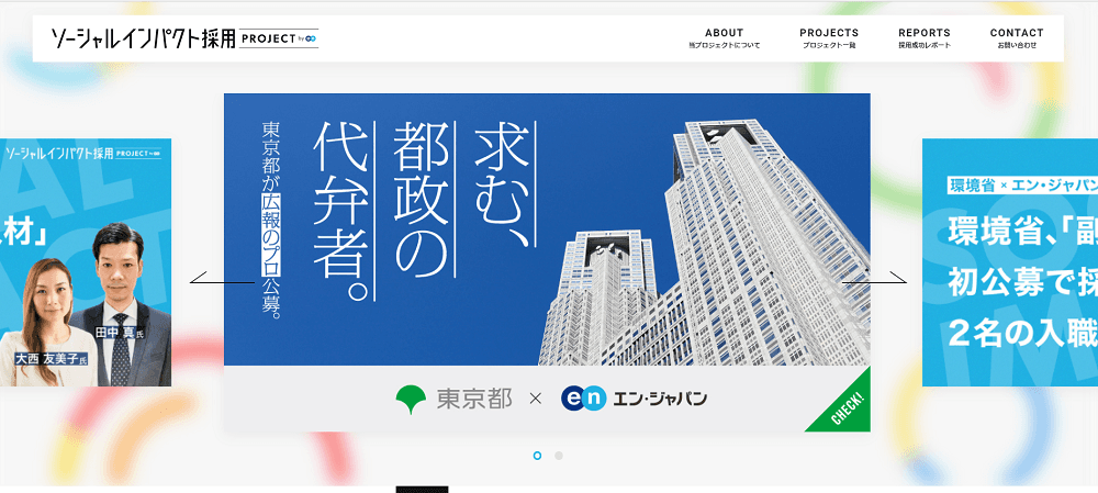 メッセージ性の強いサイトでありながら、堅苦しくなく、といってカジュアルすぎず、スマートで現代的な力強さをまとったデザイン。かなり良い仕上がりで、個人的にはかなり好きです!カラフルなあしらいに加え、各プロジェクトのパネル画像も色とりどり。支援する「ソーシャルインパクト採用」の多様さが直感的に伝わるのではないでしょうか。プロジェクトの「インパクト」が伝わるよう、フォントは力強くボールドに。またリニューアルに合わせて、プロジェクトのロゴも刷新。強さとモダンさを兼ね備えたシンボリックなロゴにもご注目ください!
