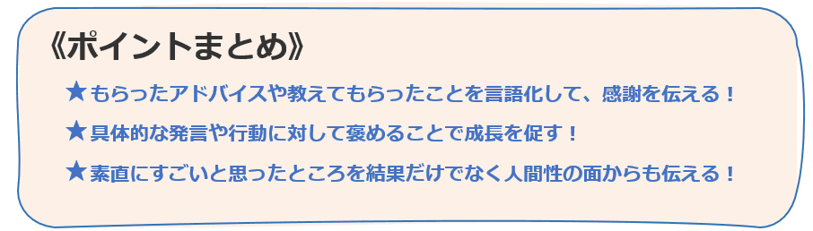 素直にすごいと思ったところを結果だけでなく人間性の面からも伝える!