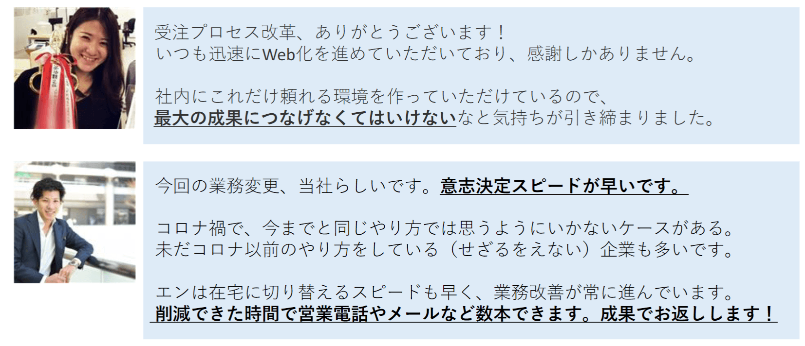 このような推進をしてきたからこそ、「現場」から多くの喜びの声が!