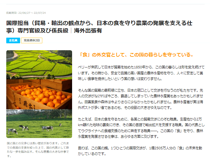 今回は局として初の公募。今まさに民間出身者のノウハウやアイデアを必要とされており、今回の採用にかける想いを強く感じました。採用を通じてより大きなソーシャルインパクトを創出できるよう、農林水産省の皆様と一緒に進めて参ります!