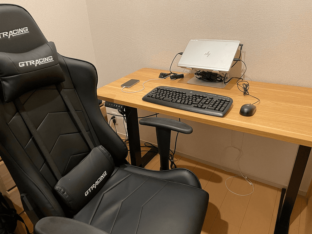 椅子は「GTRACING」というゲーミングチェアを購入しました。購入してから、以前と比較して腰の痛みが軽減されました。