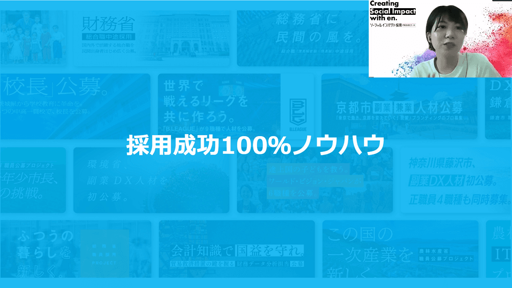中央省庁の幹部候補、自治体の副市長やDX担当、さらにはNGO/NPO・スポーツ団体・志ある企業の中核メンバー……等々、さまざまな募集を「入社後の活躍」までこだわって支援しています。