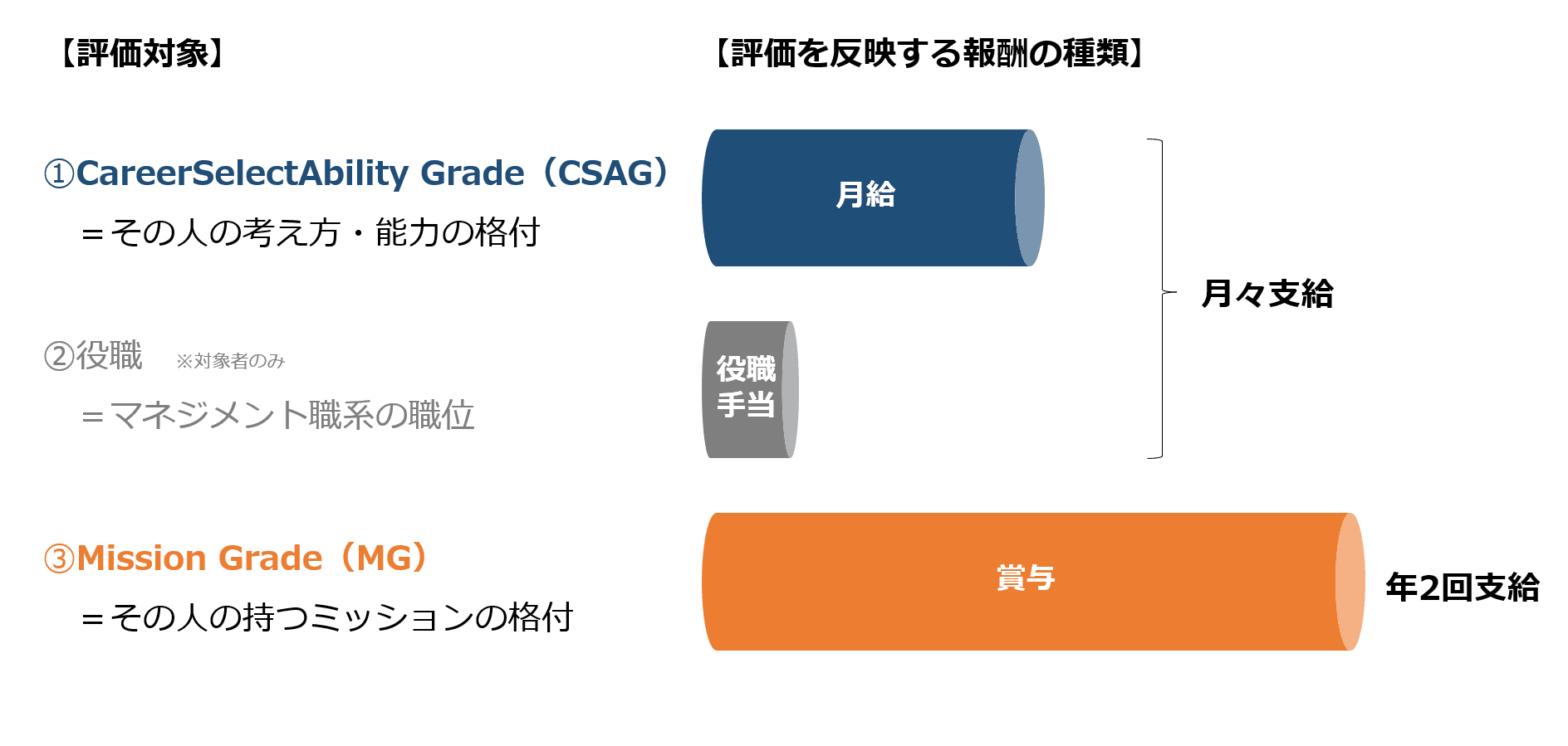 MGごとに賞与の基準額が決まっており、ミッションの達成率によって支給される賞与も増減します。