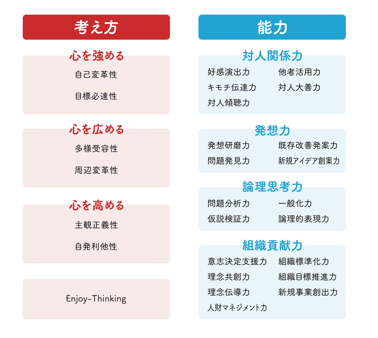CSAを高めるためにエンでは考え方と能力を細かく分けて定義してます。