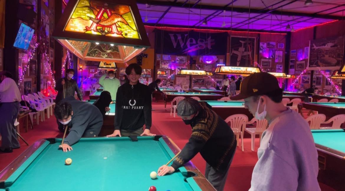 2人同時に球を突こうとしてますが、深夜ルールではありなのでしょうか?そして深夜営業しているパーリーな遊園地、気になります。