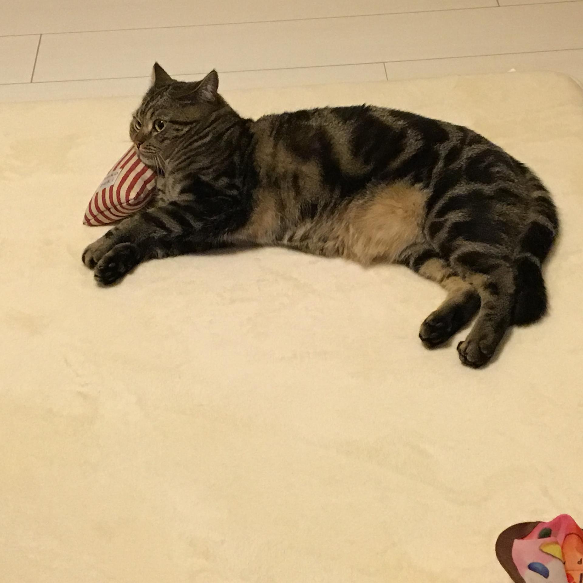 ちゃんと枕に頭のっけて、くつろいでる。。