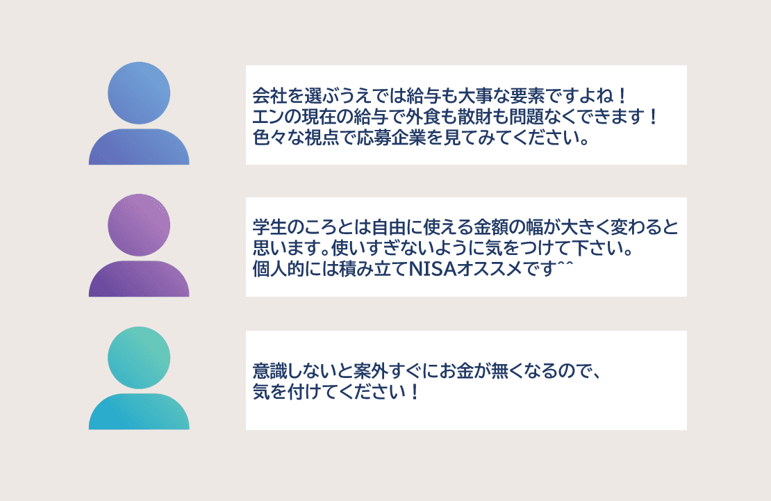給与の面以外でも、学生の皆さんに向けて応援メッセージをもらってます^^
