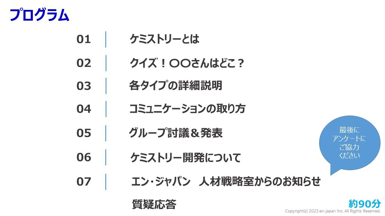 『ケミストリーの意味や自信のタイプをしるだけでなく、そこから今後への繋げ方を知れたから。また、開発で大切にしていることも知れたから』