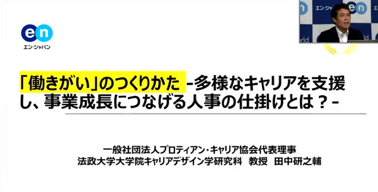 このプロティアンキャリア論における研究の第一人者である田中教授から、“事業成長につなげる人事の仕掛け”についてお話いただきました。