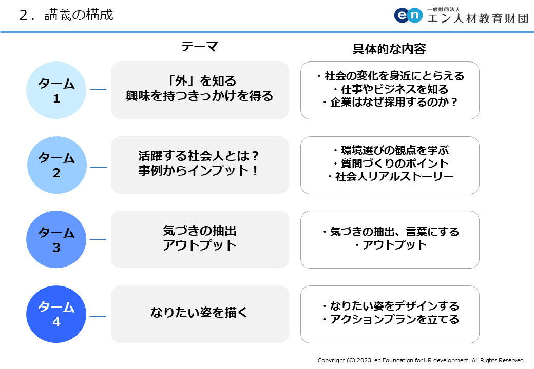 ●授業でのインプットとアウトプットを通じて将来につながる仕事価値観、環境選択の軸を持つ