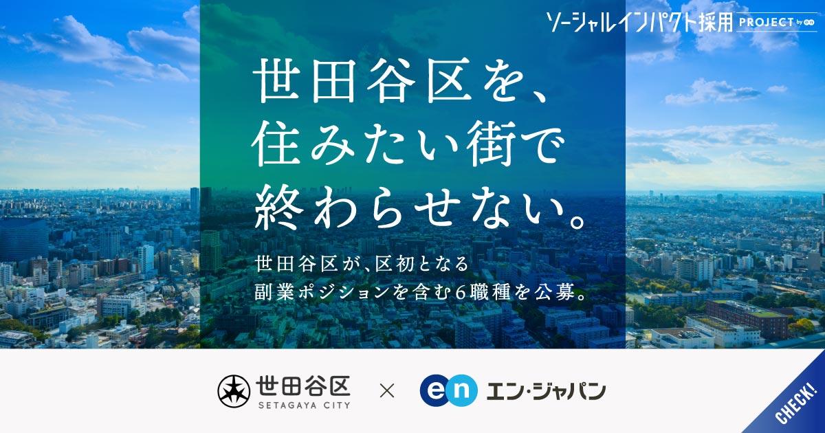 都内人口1位を誇る世田谷区が、初の副業人材含む6職種を一斉公募!世田谷区が目指す新たな時代に向けて、専門性や見識を発揮してくださる方を広く募集します!