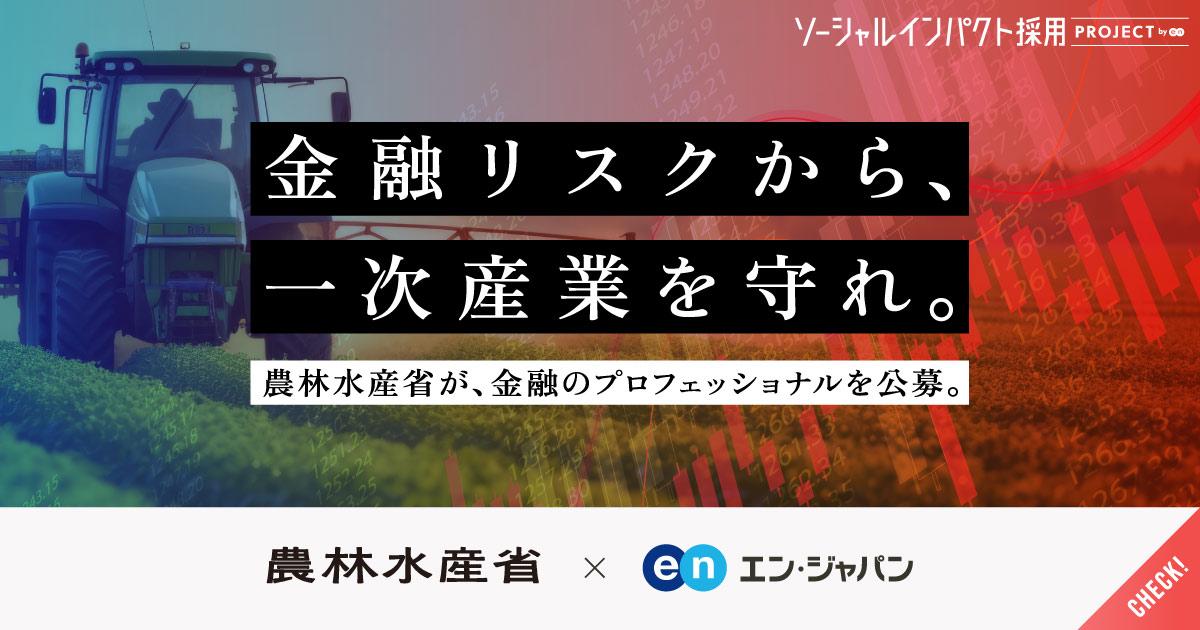 農林水産省が専門人材を公募!農林水産関係団体の経営を支える「検査官」を募集します。金融のプロとして、培ってきた知見や経験を、ぜひ発揮してください!