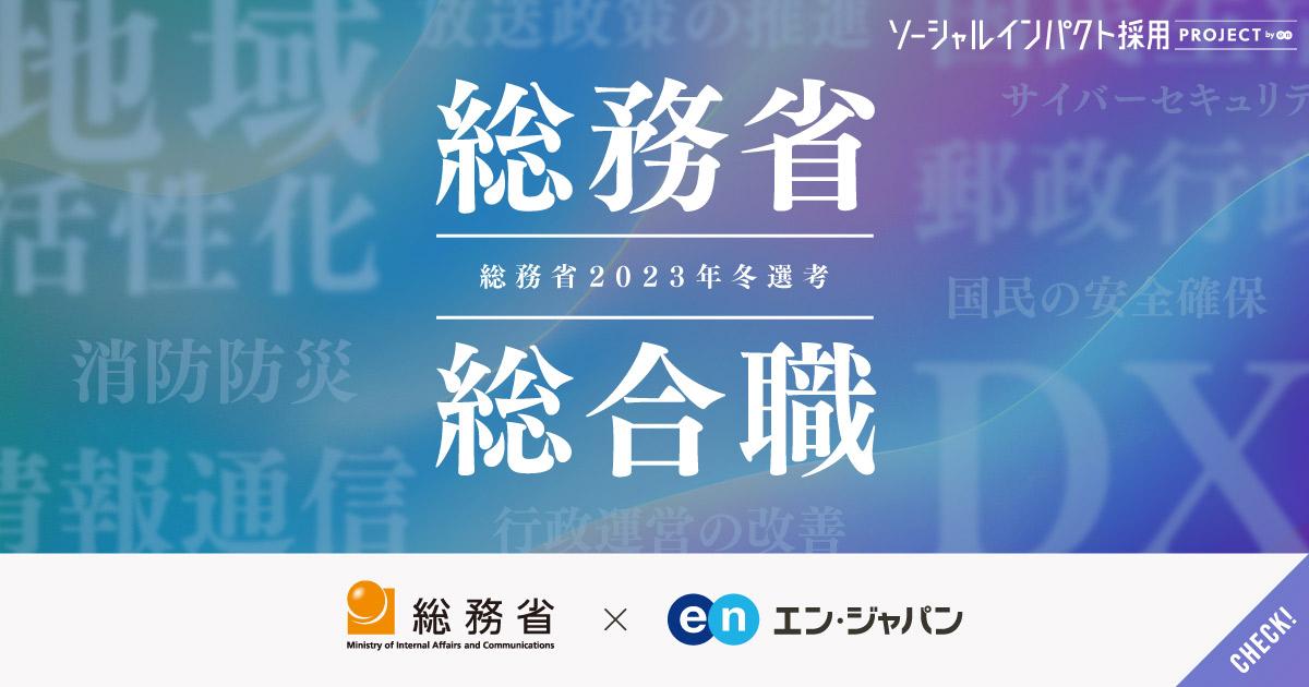 多様な形で日本を支える総務省の2023年冬選考です!幅広い領域に介在する「総務省」だからこそ、業界・職種問わず民間企業で培ってきたあらゆる経験・知識を活かすことが可能です。また、ジョブローテーションや他省庁・国際機関・自治体への出向、留学など、国を担っていく人材として必要な成長機会も用意されています。