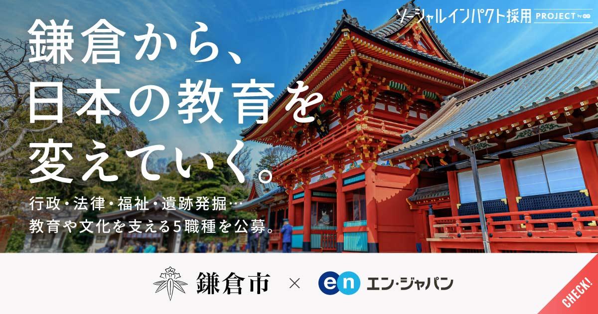 日本有数の観光地として知られる鎌倉市。市の行政においては、特に学校教育に注力しています。変化の激しい時代に対応するため、「学校教育の変革」に向けた様々な取り組みが進行中。今回の公募では、新設のポジションである「教育行政職」をはじめ、行政、法律、福祉など、鎌倉市の教育・文化を支える専門職5ポジションを一斉募集しています。鎌倉市教育長・高橋氏のインタビュー記事も注目です!