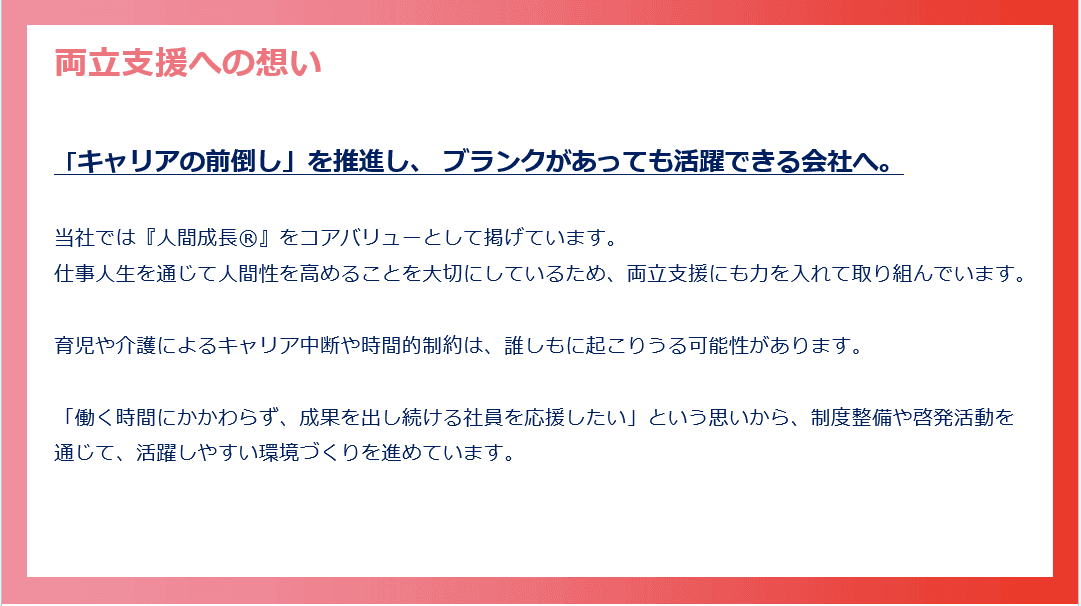 人財戦略室ではどんな想いを掲げて両立支援の制度整備や啓発活動をしているのか、具体的にどんな制度があって、いつ何ができるのか、ぜひこのタイミングで改めてご確認いただけると嬉しいです!