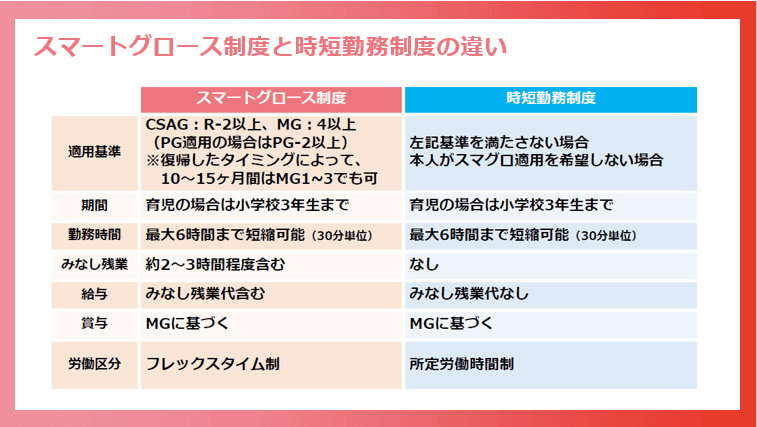 平原さんからは、当社の女性活躍支援制度「スマートグロース制度」についての紹介と、「時短管理職」として働く社員の働き方を中心にお話いただきました。