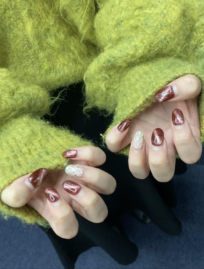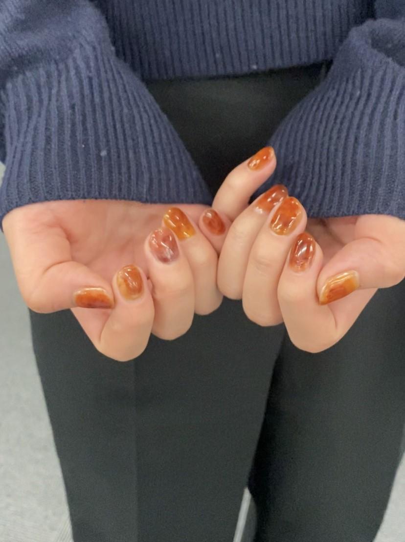engage事業部コンサルティングセールスの大塚さんは、シンプルながらもおしゃれなべっ甲カラー!クライアント先へ訪問することも少なくないセールス部門では、どこまでのデザインが適切か悩む方も少なくないのでは…?ぜひ大塚さんの毎月のネイルも参考にしてみてください^^