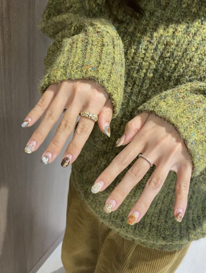 なんと深田さんは、一つ一つの指で全て違うデザインにしているそう!そして聞いてびっくり、これら10個のデザインは全て、ご自身で指定しているとのこと。ネイルサロンに行く前に、SNSでかわいいデザインを検索・デザインしているとのことで、ネイルへのこだわりは社内トップクラス…!