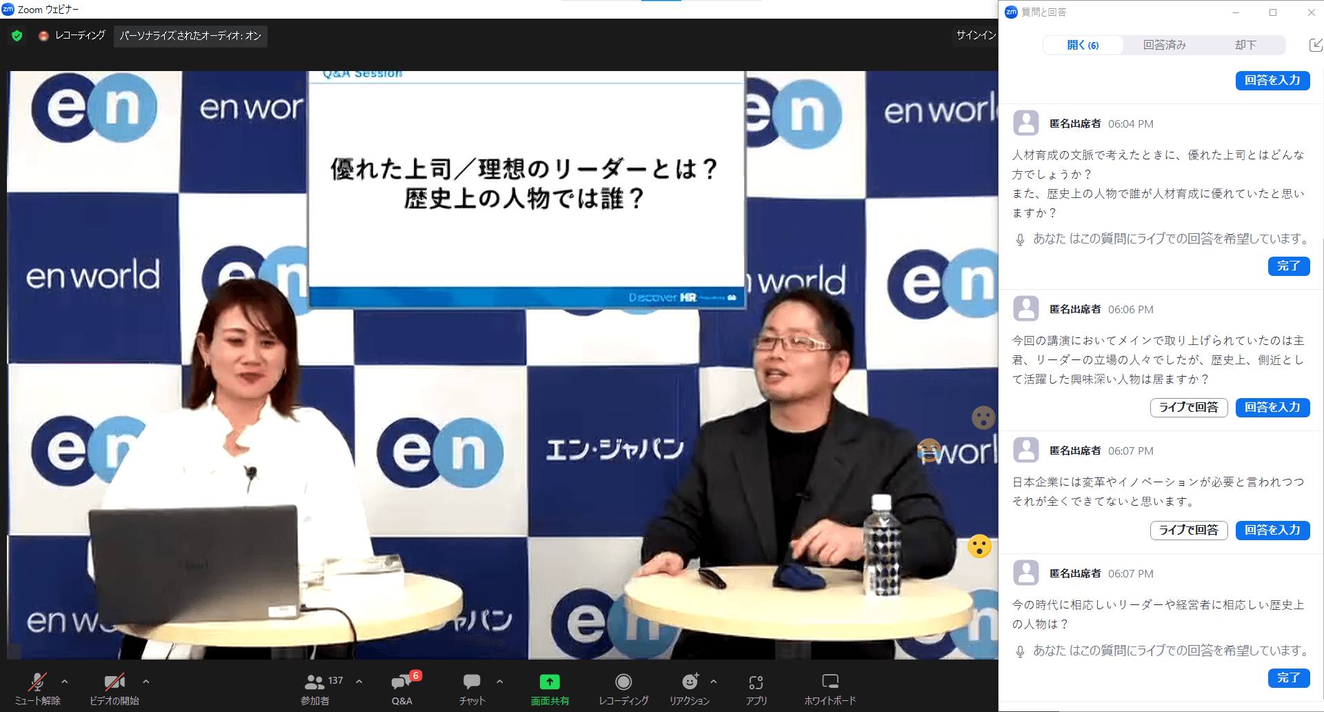 ・歴史と人事領域を組み合わせたセミナーは退屈になりがちだったのですが、本日のセミナーは本当に楽しく聞けました。