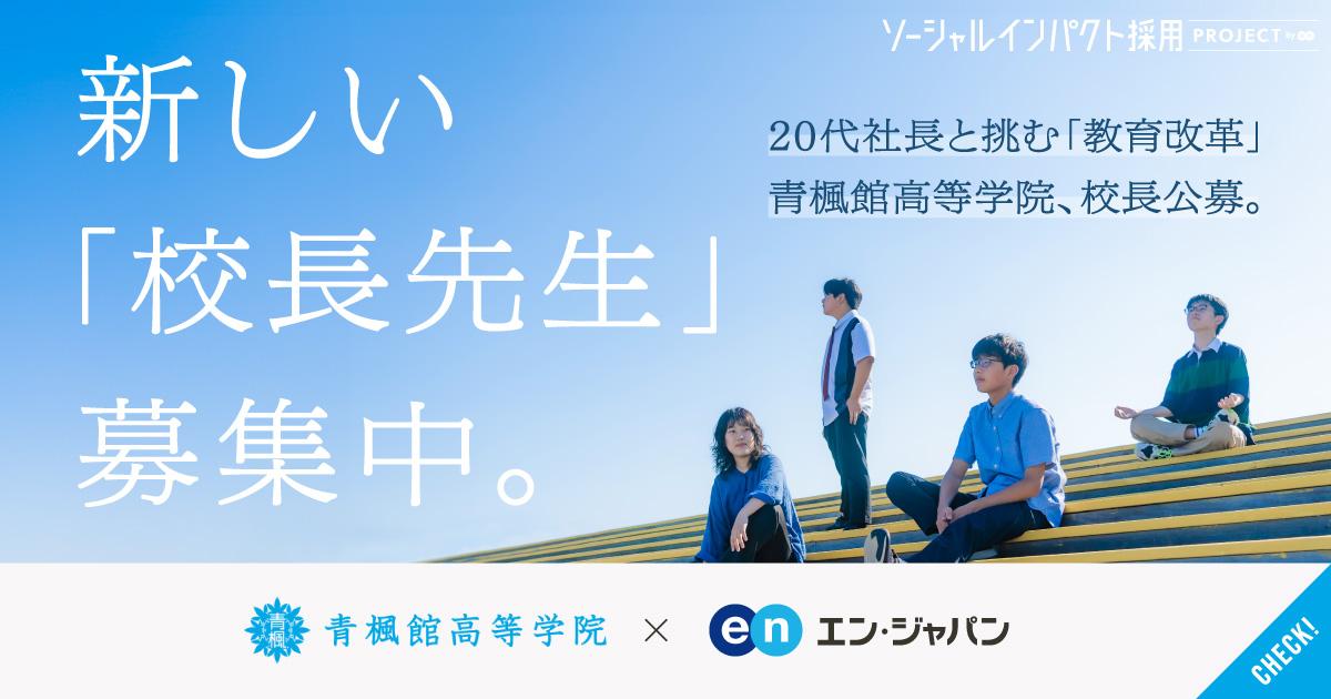 兵庫県明石市にある青楓館高等学院は、新たな教育の王道を創るべく設立されました。創立メンバーは28歳と33歳。開校から1年で約100人の生徒を迎え、いよいよ新しい教育のモデルケースを、日本全体に広げていくフェーズに。そんな同校で、「新しい教育者」となる校長候補を引き続き募集しています。