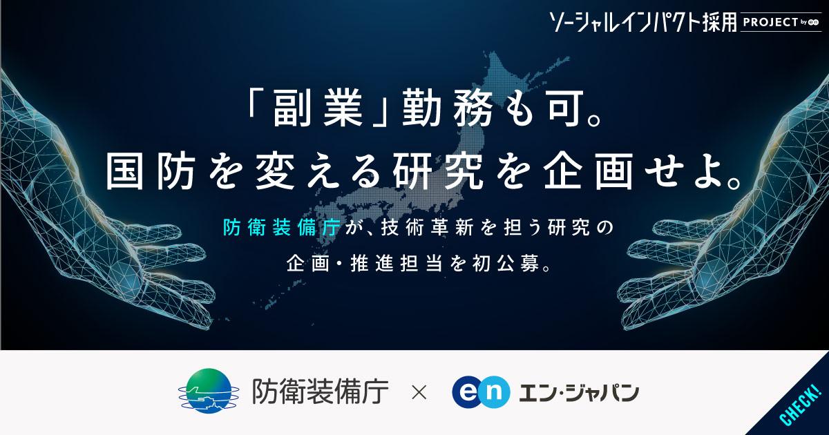 装備品等の研究開発や調達などを担い、日本の防衛を支える防衛装備庁が、革新的研究を企画・推進する「プログラムマネージャ」を、常勤に加え、防衛装備庁初となる“副業”での公募を実施中。国の防衛を変える大きなミッションに挑んでみませんか!?