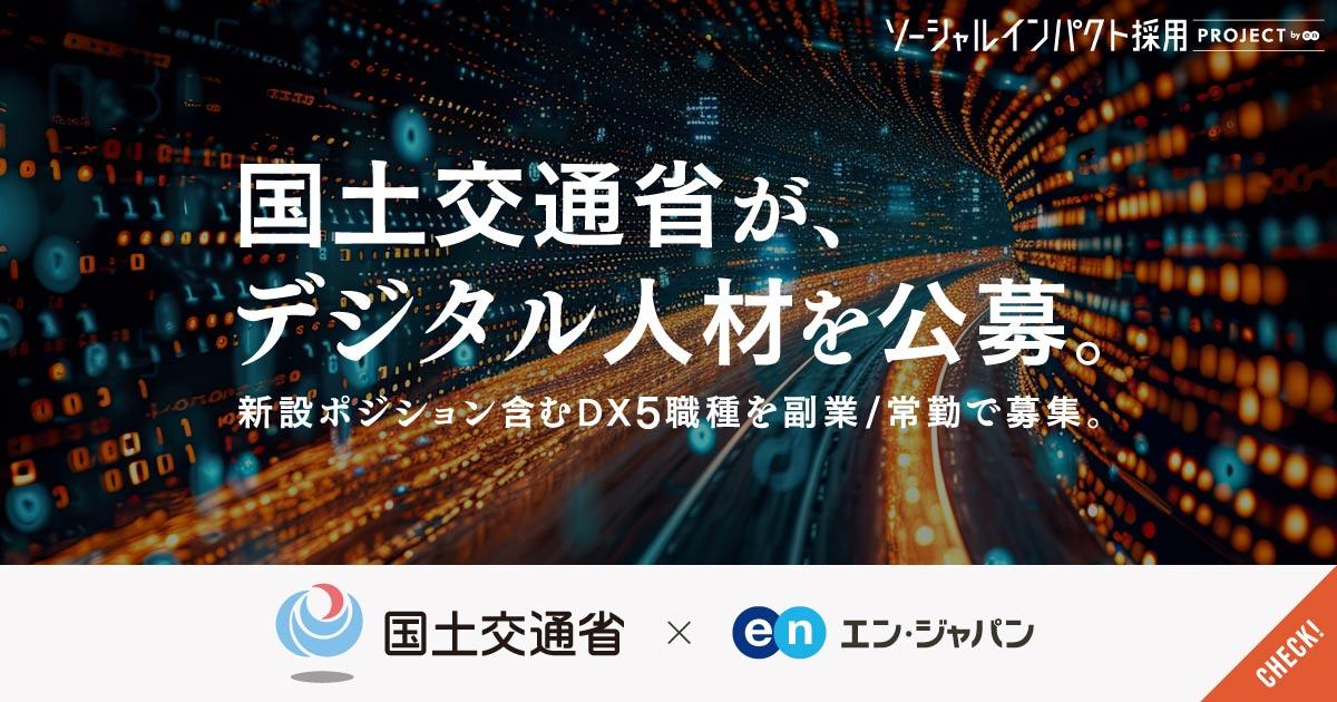 日常と密接に関わる分野を幅広く管掌する国土交通省が、DX推進ポジション、副業3職種に加え、常勤2職種を公募しています。鉄道、河川、港湾、航空、災害対策、観光、気象・・・国土全体を変革するスケールの大きい仕事にチャレンジできます!