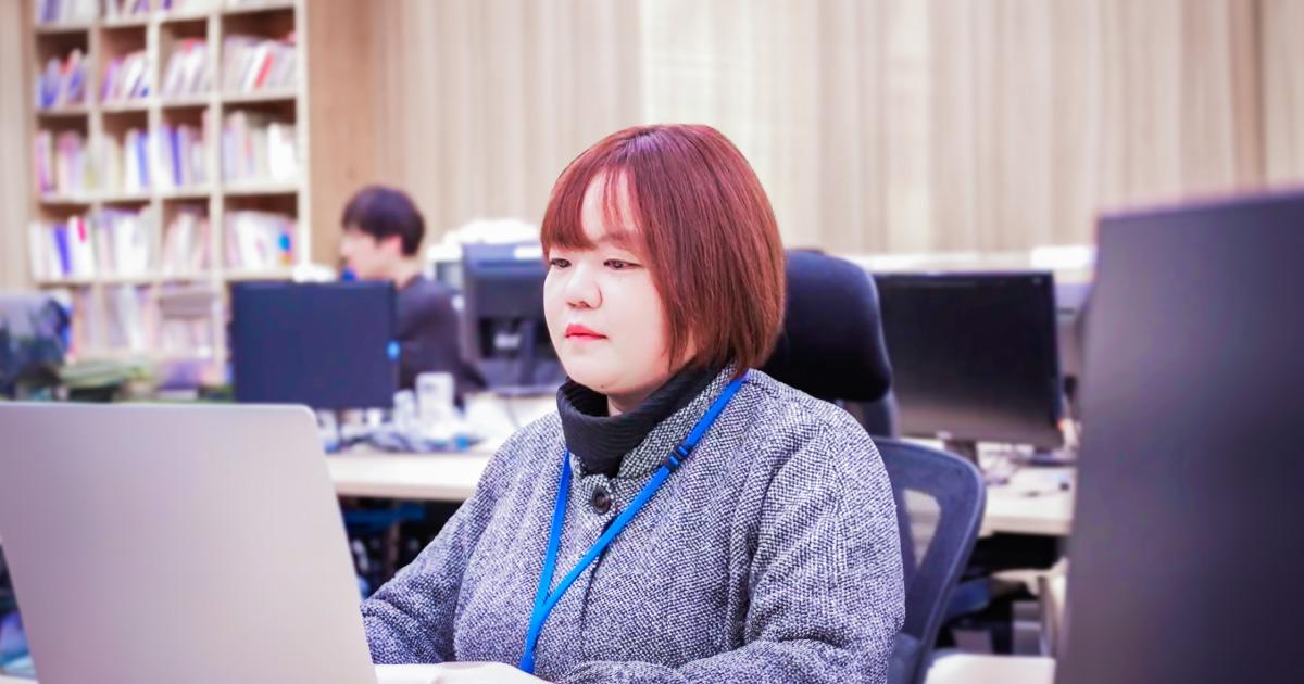 南岡 真波(みなみおか まなみ)さん。中途入社で人材紹介事業部に配属。2022年4月にデザインチームに異動。