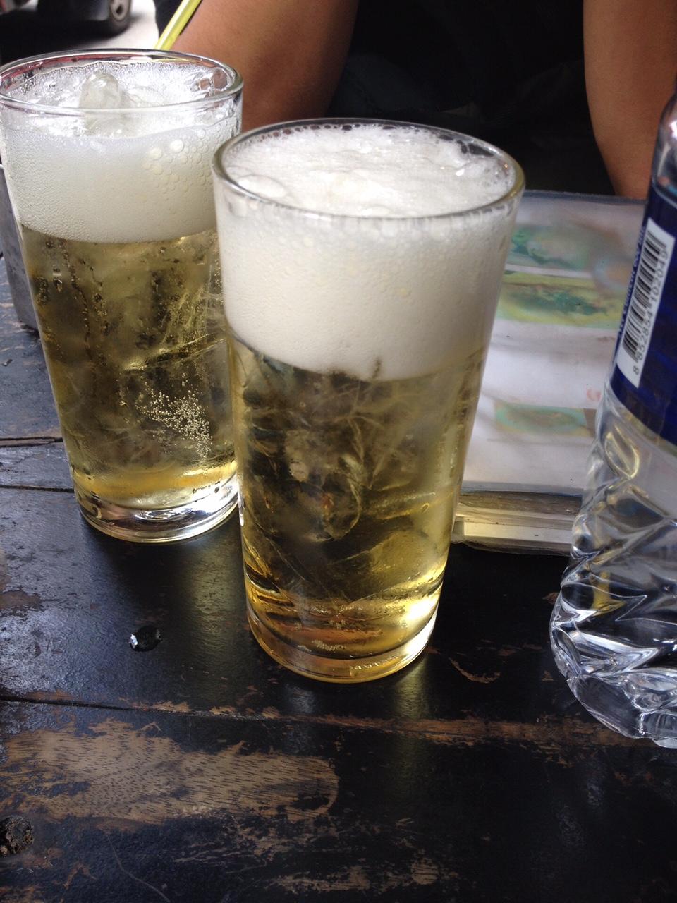 お店(特に屋外のお店)でビールをオーダーするとビール瓶と氷の入ったグラスが出てきます!