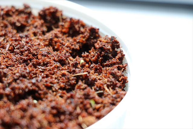中には種と、乾燥されて圧縮されている?と思われる土らしき物体だけ。