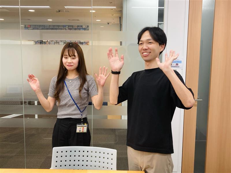 前日、デジプロのルーキー歓迎会で超ときめき♡宣伝部を覚えてきてくださった田中さん(右)と、こっそりとき♡宣ファンの石田さん(左)。