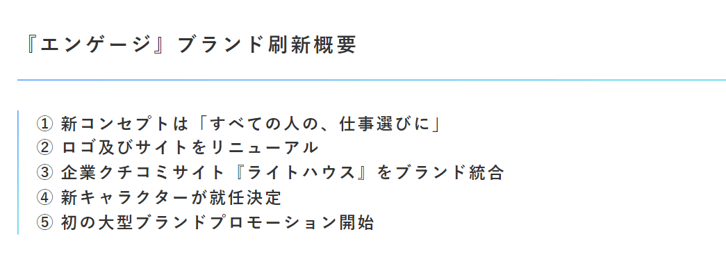 今回のブランド刷新では、新コンセプトとして「すべての人の、仕事選びに」を掲げました。転職はもちろん、アルバイト・パート・就職も含めた、あらゆる仕事選びを支え、当社が大切にしてきた「入社後活躍」を実現していくブランドとして『エンゲージ』を定義しています。