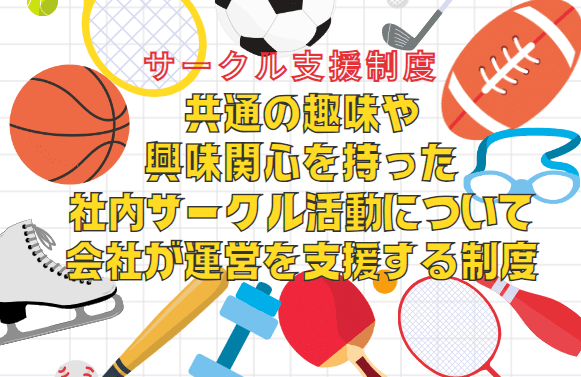 サークル支援制度とは共通の趣味や興味関心を持った社内サークル活動について、会社が運営を支援する制度です。