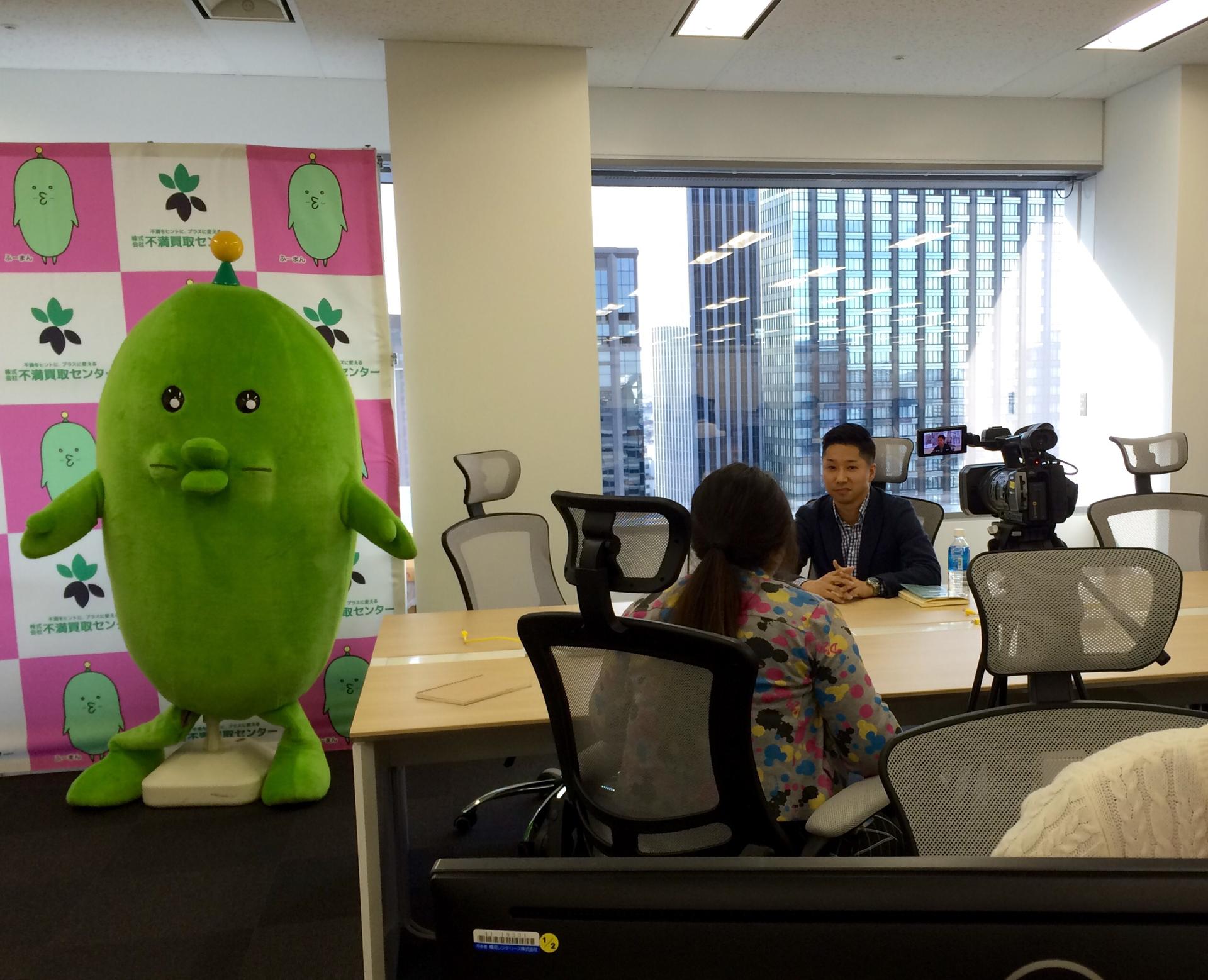 他のマスコミ取材でもおなじみ、不満買取センターのマスコット、ふーまん!